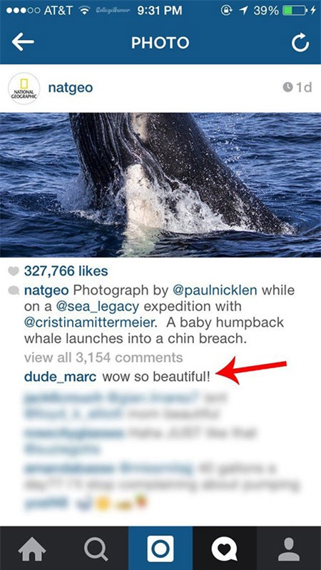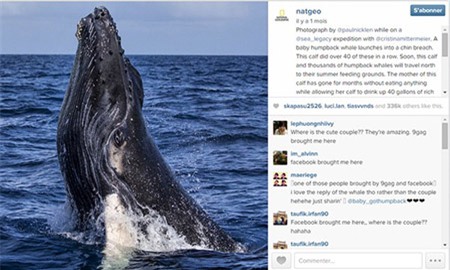 Bức ảnh con cá voi lưng gù gốc trên Instagram của kênh NatGeo |
