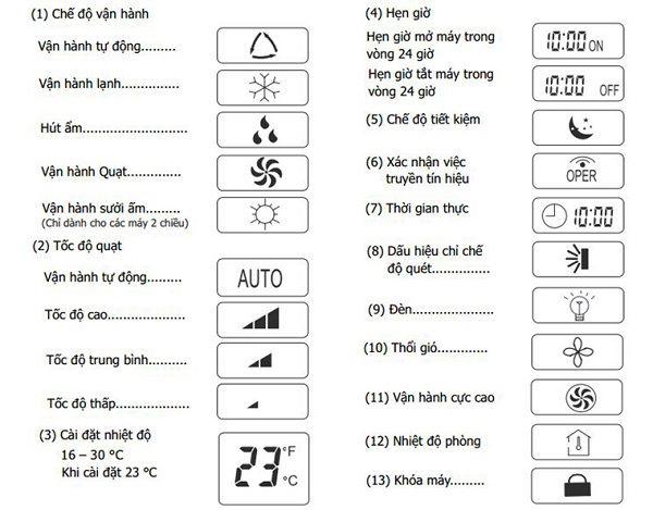 Trong quyển hướng dẫn sử dụng điều hòa nhiệt độ, bạn có thể tìm hiểu được khá nhiều chức năng của những biểu tượng khác nhau.