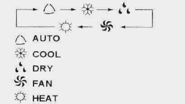 Một vài biểu tượng có chức năng cơ bản làm mát, hút ẩm, sưởi và tự động như Cool, Dry, Heat hay Auto.