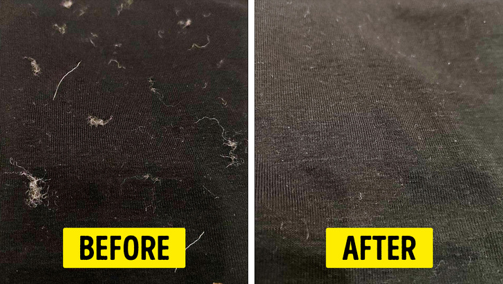 Nếu bạn còn chưa biết thì khăn ướt có thể loại bỏ xơ vải trên quần áo. Nó hoạt động như một vật để hấp thụ các vải vụn, xơ vải, lông và tóc. Thả một chiếc khăn ướt vào máy giặt sẽ giúp bạn tiết kiệm được thời gian để làm sạch các sợi lông, tóc cũng như xơ vải trên quần áo sau khi giặt máy.