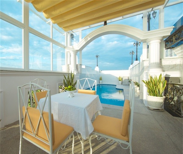 Trên tầng thượng là một bể bơi nhỏ và bộ bàn ghế thanh lịch để Lý Nhã Kỳ thư giãn.
