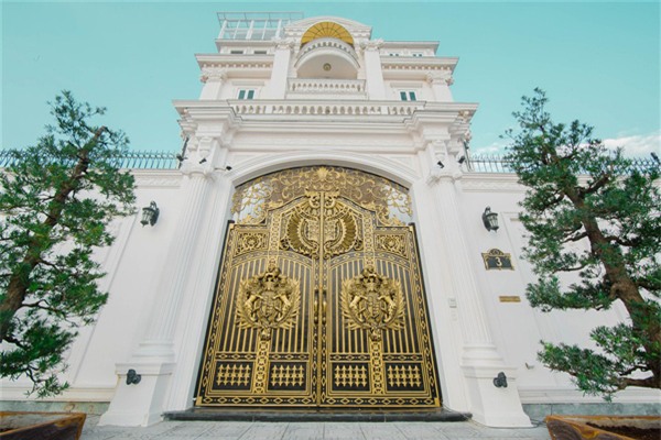 Biệt thự này nằm bên bờ sông Sài Gòn, có diện tích hơn 600m2, được dát vàng từ cổng.