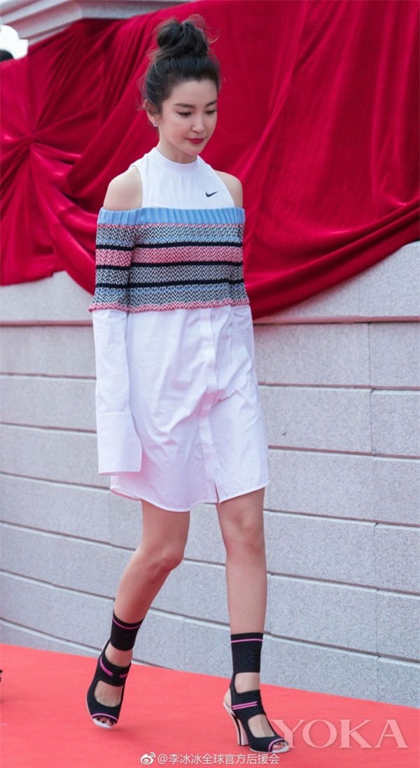 Kết hợp cùng một set layer váy sơmi, Lý Băng Băng chọn đôi sandals ôm sát thiết kế khá độc nhưng lại hợp dơ cực kỳ với bộ váy cô đang mặc.