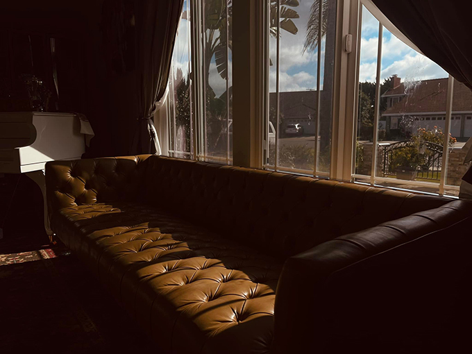Một góc trong phòng khách có sofa, ghế bành để mọi người quây quần trò chuyện hoặc thưởng thức tiếng đàn piano của nữ ca sĩ.