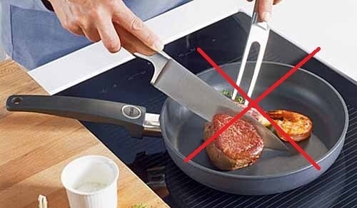 Không nên dùng các vật sắc, nhọn khi chế biến thức ăn bằng chảo chống dính