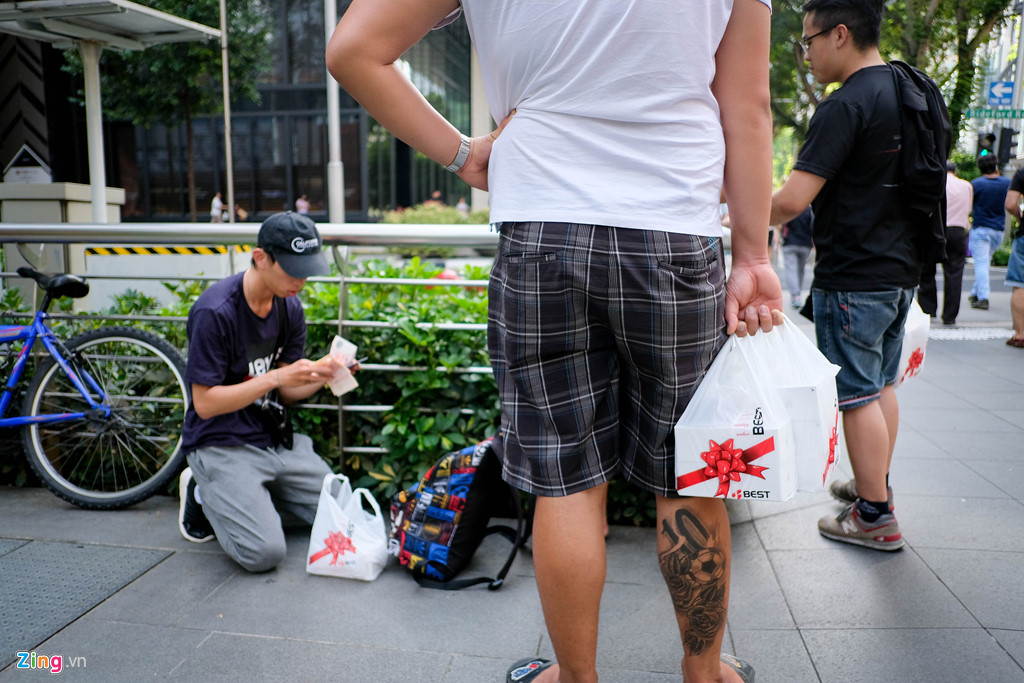 Những người xếp hàng mua máy bán lại cá nhân đa phần là người nước ngoài. Tuy vậy, mức giá họ đưa ra khá cao nên khó để bán được hàng. "Tôi đã xếp hàng cả đêm để có sản phẩm này. Vì vậy tôi không thể bán rẻ được", Tanya Saya, người Indonesia chia sẻ với Zing.vn.