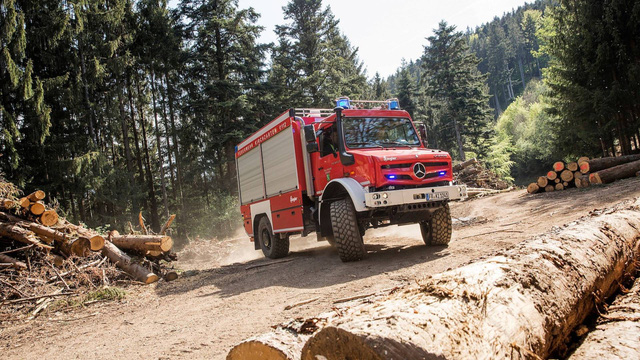 Tại thị trấn Kirchzarten ở phía Tây Nam nước Đức, đội cứu hỏa tình nguyện đã sử dụng một chiếc Mercedes-Benz Unimog U5023 nâng cấp để tối ưu hóa khả năng chiến đấu với “bà hỏa” trong khu Rừng Đen dày đặc cây lá kim. Xe có độ cao gầm lớn - 45 cm, dùng bộ bánh xe và lốp off-road cỡ lớn, cùng hệ thống dẫn động 4 bánh tiên tiến.