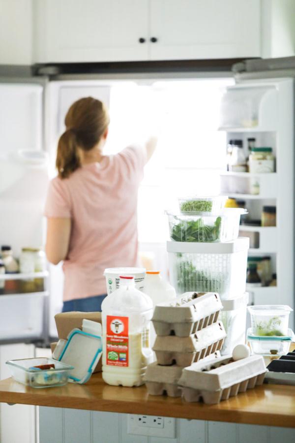 Bước 4: Đem các kệ nhựa trong tủ lạnh đã được phơi khô lắp lại vào như cũ. Sau đó xếp thức ăn, các thực phẩm cần được bảo quản trong tủ lạnh như thường là xong.