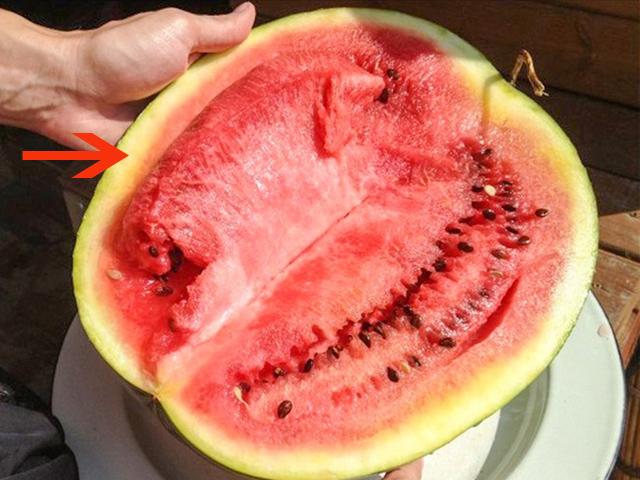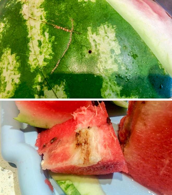 Ngay cả khi mặt bên trong không sao nhưng một phần thịt của quả dưa hấu cũng sẽ bị hỏng vì lỗ này.