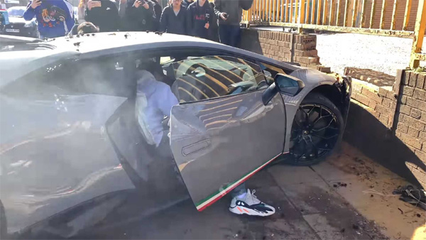 Lamborghini Huracan Performante bị tông vào hàng rào.