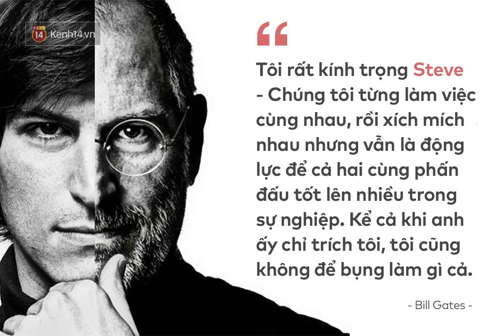 Cá nhân Bill Gates cũng dành cho người đồng nghiệp một thời của mình những lời chia sẻ thành thật nhất: "Tôi rất kính trọng Steve - chúng tôi từng làm việc cùng nhau, rồi xích mích nhau nhưng vẫn là động lực để cả hai cùng phấn đấu tốt lên nhiều trong sự nghiệp. Kể cả khi anh ấy chỉ trích tôi, tôi cũng không để bụng làm gì cả."