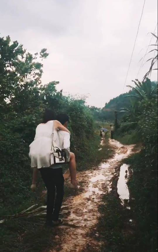 Mới đây, cộng đồng mạng truyền tay nhau một đoạn clip ngắn ghi lại cảnh lãng mạn chẳng kém. Trong đó, một cặp đôi phải đi qua một đoạn đường toàn sình lầy, bùn đất ướt át. Cô gái thì đang mặc váy trắng thướt tha, chân đi giày cao gót.