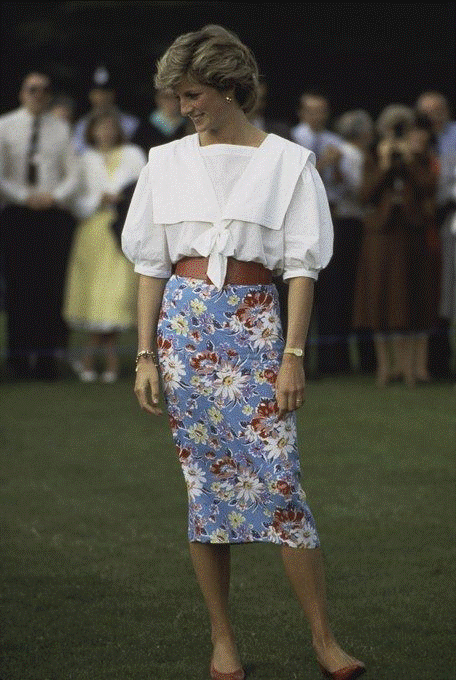 Chỉ cần một thiết kế áo blouse tay phồng này, Công nương Diana đã lên được khá nhiều set đồ diện cùng nó. Và bạn thấy đấy, công nương của chúng ta luôn tận dụng thắt lưng hoặc không thì cũng sơ vin gọn gàng để nhấn thêm vào vòng eo và giúp vóc dáng thon gọn hơn khi diện áo.