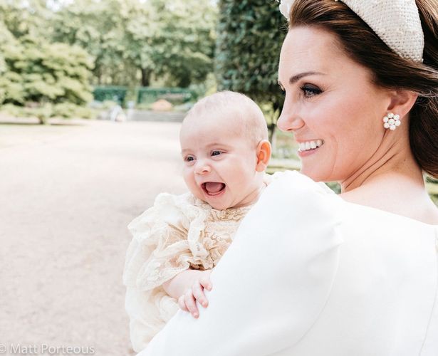 Đó là hình ảnh Hoàng tử Louis tươi cười rạng rỡ trong vòng tay mẹ còn Công nương Kate cười ngọt ngào, hạnh phúc với vẻ mặt đầy mãn nguyện. Nụ cười tỏa nắng của Louis khiến người hâm mộ phát cuồng vì đây là bức ảnh đầu tiên họ được nhìn rõ "thần thái" của hoàng tử út. Trong khi đó, đa phần những bức ảnh trước của Louis đều chụp khi cậu bé đang ngủ.