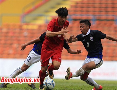 U22 Campuchia trước khi Công Phượng băng vào dứt điểm cận thành, mở tỷ