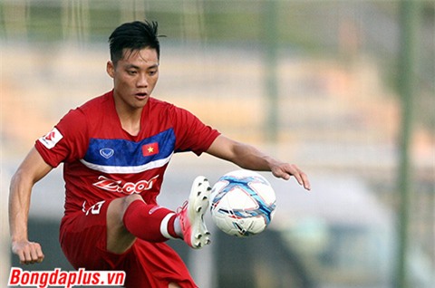 mặt trung vệ U22 Việt Nam trước khi tung cú sút cận thành.