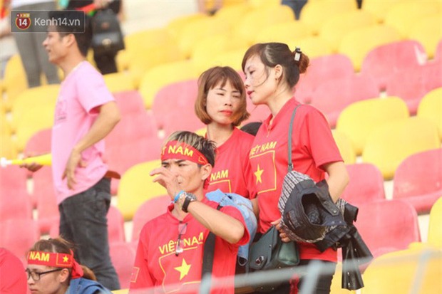 Trên khán đài, các cổ động viên đã không giấu được nỗi thất vọng. Họ yêu cầu HLV Hữu Thắng từ chức và hét lên "Công Phượng ơi, về đi cày đi".