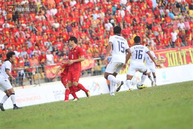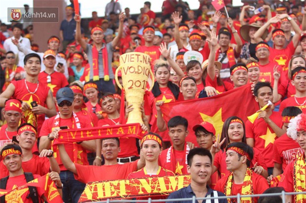 Các cổ động viên Việt Nam áp đảo hoàn toàn Thái Lan, tạo ra làn sóng đỏ trên khán đài tiếp sức cho Công Phượng và đồng đội.