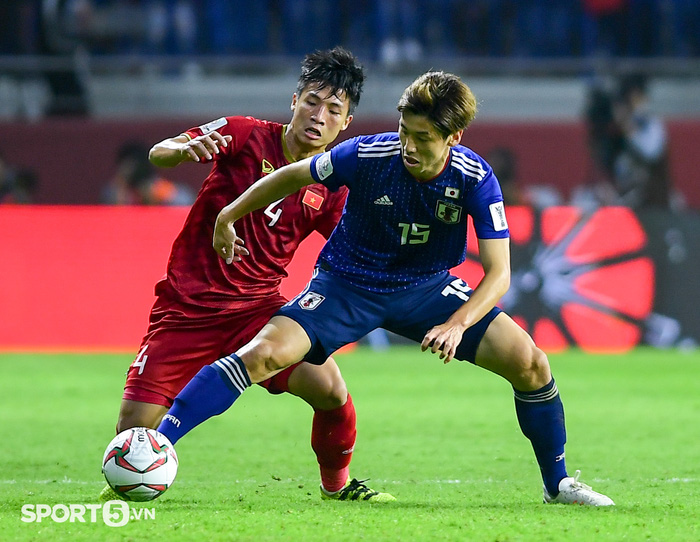 Hàng thủ tuyển Việt Nam sau những va chạm với đối thủ mạnh Iran, Iraq đã chơi tốt hơn trước Nhật Bản. Văn Hậu lăn xả truy cản hậu vệ phải hàng đầu châu Á Hiroki Sakai
