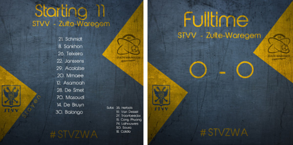 Trận này STVV hoà 0-0 Zulte Waregem. STVV thi đấu có phần nhỉnh hơn và tạo ra nhiều sóng gió hơn trước khung thành đội khách nhưng khả năng kết thúc ở đoạn cuối của đội bóng thuộc vùng Limburg là vấn đề lớn.