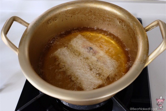 Rán trong khoảng 2 – 3 phút cho tới khi lớp vỏ có màu vàng ruộm đẹp mắt.