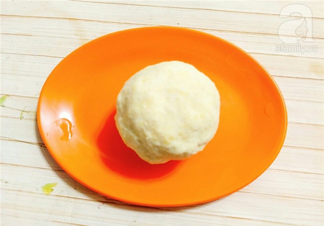 Nắm đậu thành 1 khối to chắc để khi nấu xôi xong sẽ dùng dao gọt đậu lên trên xôi.