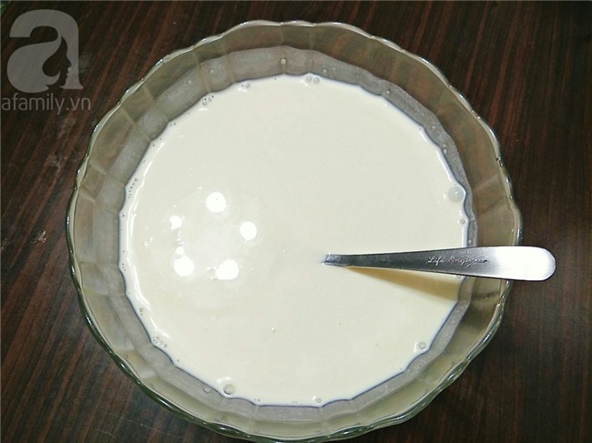 Cho tất cả các nguyên liệu vào 1 cái tô và khuấy đều cho đường và sữa đặc tan hết, nếu thích bạn có thể cho thêm dừa bào sợi cho thêm phần hấp dẫn nhé.