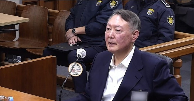 Cựu tổng Thống Hàn Quốc Yoon Suk-yeol tại tòa. (Ảnh: Yonhap)