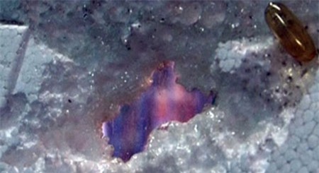 Sau khi làm thử nghiệm ngay tại Chi cục trước sự chứng kiến của người tiêu dùng và các cơ quan ban ngành, chỉ trong vòng 10 phút từ lúc đặt viên dầu cá lên mặt xốp thì mặt xốp bắt đầu bào mòn cho đến khi xuyên thủng.