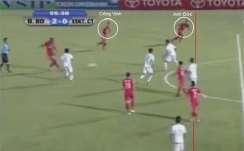 Xem lại phá quay chậm cho thể thấy, ngay cả Anh Đức đứng dưới Công Vinh cũng chưa bị việt vị, trong khi tiền đạo xứ Nghệ là người băng xuống sau.