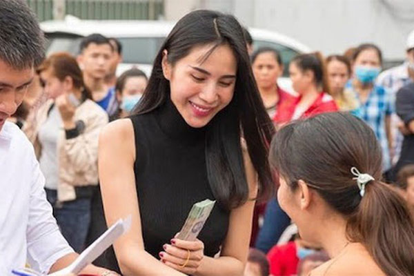 Thuỷ Tiên và Công Vinh đi rút tiền tại ngân hàng để cứu trợ miền trung