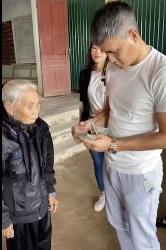 Công Vinh trao tiền cứu trợ và liên tục khẳng định không phải tiền của mình