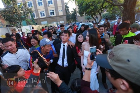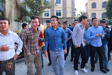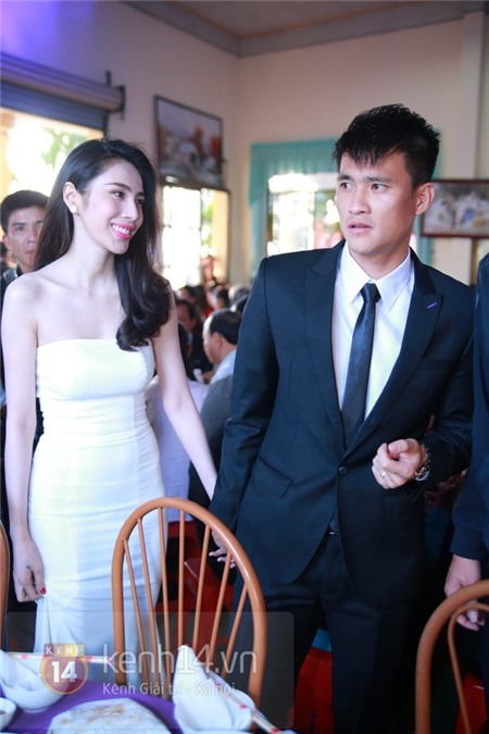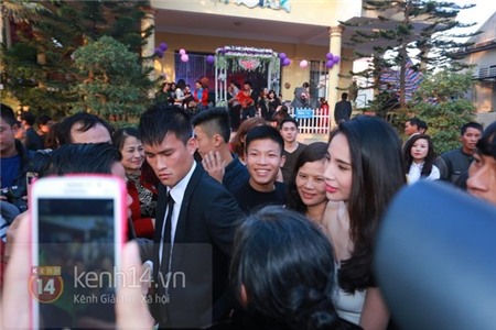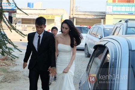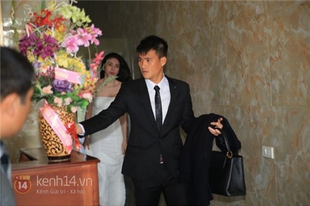 15h00: Khánh Chi khệ nệ bụng bầu cùng chồng vui vẻ đến ngày vui của anh trai. Cầu thủ Văn Quyến cũng có mặt trong những khách mời đến tham dự. Anh diện trang phục khá đơn giản.