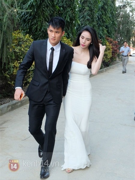 Sau khi kết thúc buổi tiệc, Công Vinh dìu vợ ra xe về lại khách sạn để nghỉ ngơi |