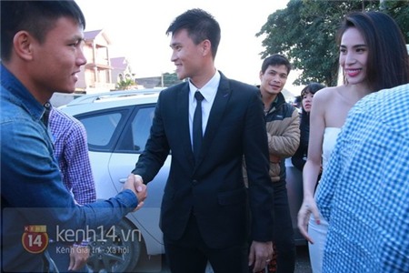 17h00: Phần nghi lễ kết thúc. Vợ chồng Thủy Tiên bất ngờ ra đón các cầu thủ bạn bè của Công Vinh vừa mới đến.