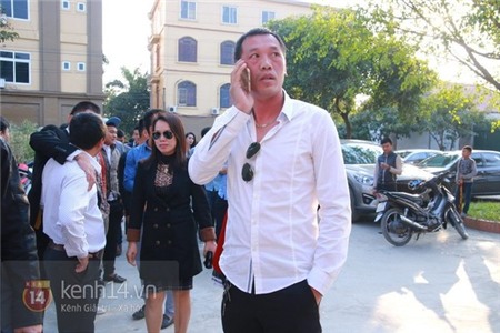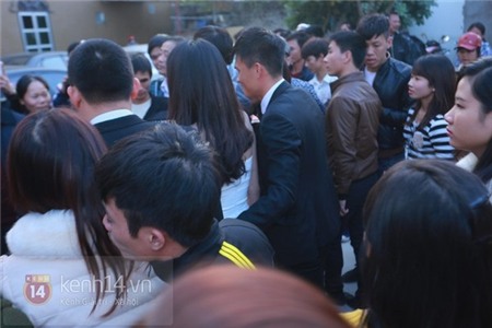 Công Vinh nắm chặt tay vợ trên suốt quãng đường tiến vào bên trong |