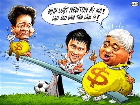 Hình ảnh biếm hoạ hài hước cho lý do Công Vinh tạm biệt bầu hiển về với bầu Kiên. |