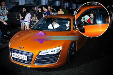 Chiếc siêu xe Audi đời 2014, dòng R8 có giá sau thuế lên tới 16 tỷ đồng. Tuy nhiên, chiếc xe đã gây ra những nghi vấn khi có nhiều ý kiến cho rằng, xe vốn là của hãng nhập về làm sự kiện, nhờ người nổi tiếng lái thử. Trước đó, cặp đôi mua chiếc xe mang kiểu dáng thể thao, có trị giá khoảng 150.000 USD (khoảng 2,3 tỷ đồng).