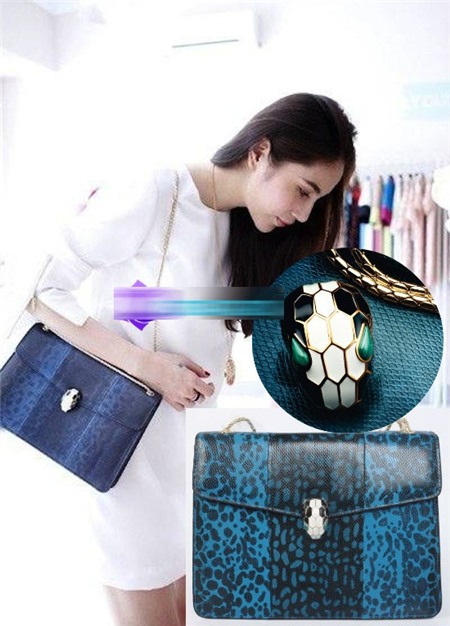 Thêm một chiếc túi Serpenti khác màu, với phần khoá hình đầu rắn vô cùng tinh xảo. |