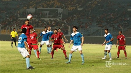Tuyển Indonesia (áo đỏ) đã có chiến thắng xứng đáng. Công Vinh chơi khá mờ nhạt ở trận đấu này. |