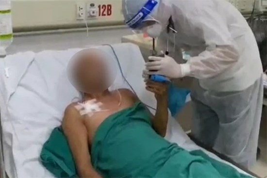 Chồng được chuyển đến khoa Cấp cứu, Bệnh viện Bệnh Nhiệt đới Trung ương cùng thời điểm người vợ chuẩn bị đặt ống nội khí quản, bà A. xúc động "xin bác sĩ cho chồng tôi thở máy. Tôi không cảm thấy khó thở, nên không cần".