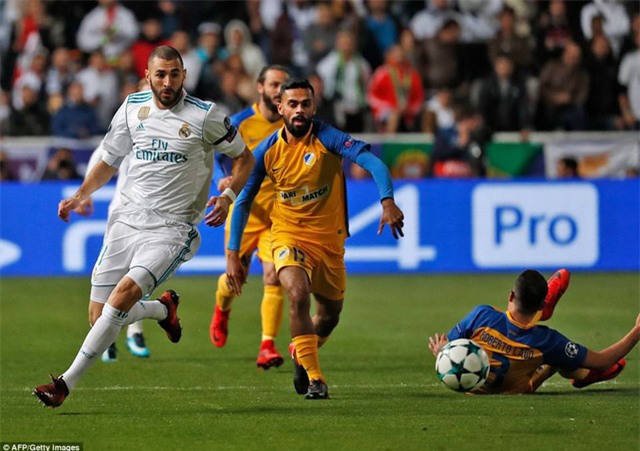 Hành quân đến sân GSP của Apoel, Real Madrid nhanh chóng áp đặt thế trận trước đối thủ yếu hơn. "Kền kền trắng" đã ghi đến 4 bàn thắng ngay trong hiệp 1, nhờ công Benzema (2 bàn), Modric và Nacho.