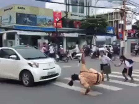 Lao mình ra che chở cho 2 đứa trẻ, người thanh niên trong trang phục CSGT này đã gặp phải một tai nạn khiến anh ngã lăn lộn trên đường.