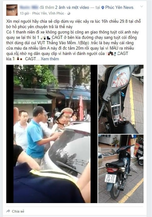 Vừa qua trên mạng xã hội Facebook lan truyền Clip về sự việc CSGT thị xã Phúc Yên, tỉnh Vĩnh Phúc đánh người vi phạm giao thông.Theo thông tin được chia sẻ thì vào 16h chiều 29/8 tại bờ hồ Phúc Yên. Một thanh niên đi xe không gương bị Công an giao thông tuýt còi, khi anh này quay xe lại thì bị 1 CSGT ở bên kia đường chạy sang tuýt còi đồng thời dùng dùi cui vụt thẳng vào mồm.