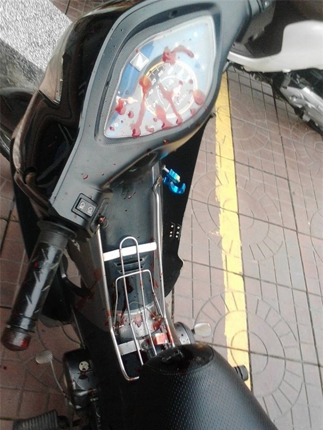 Chiếc xe máy của người thanh niên bị đánh, với nhiều vết máu trên xe. ( Nguồn: Facebook) |