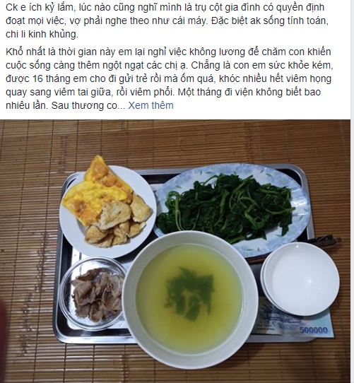 Khổ nhất là thời gian này em lại nghỉ việc không lương để chăm con khiến cuộc sống càng thêm ngột ngạt các chị ạ. Con em sức khỏe kém, được 16 tháng em cho đi gửi trẻ rồi mà ốm quá, khóc nhiều hết viêm họng quay sang viêm tai giữa, rồi viêm phổi. Một tháng đi viện không biết bao nhiêu lần. Sau thương con quá em đành nghỉ việc, tính ở nhà chăm con tròn 3 tuổi cho cứng cáp rồi đi lớp.