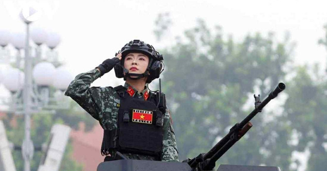 Cụ Bình theo dõi tổng duyệt cấp nhà nước diễu binh, diễu hành sáng 30/8. Ảnh: Truyền hình Quốc phòng Việt Nam