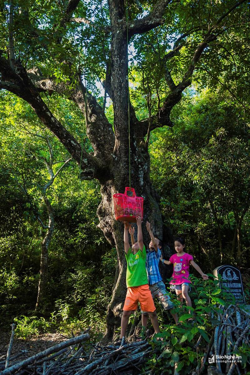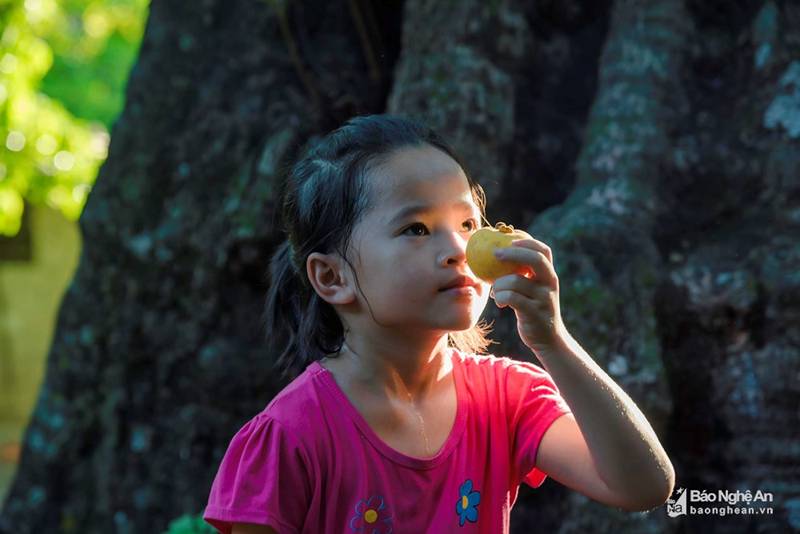 Mỗi mùa quả chín, trẻ em, người lớn lại tập trung quanh gốc thị để nhặt quả rụng, thưởng thức hương vị mùa Thu dưới tán lá xum xuê cao lớn.