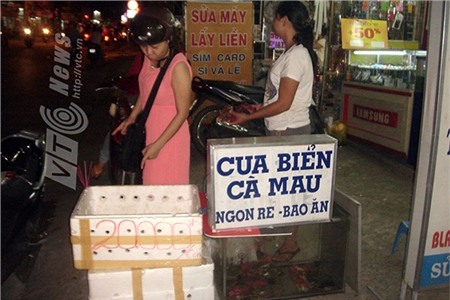 Ngoài các đầu mối, vựa cua lớn, gần đây tại TP.HCM xuất hiện nhiều điểm bán cua, ghẹ tại nhiều vỉa hè các tuyến đường, gầm cầu.