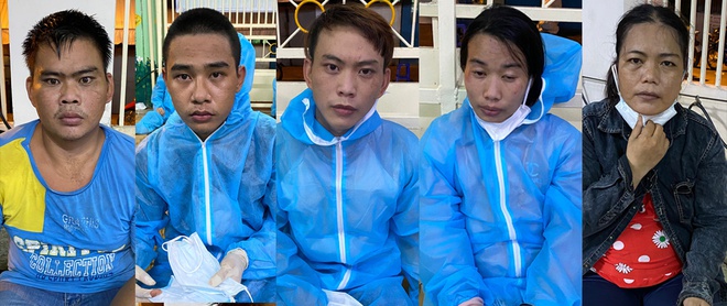 Rớt, Tuấn, Dinh, Giao, Hương (từ trái qua) bị cảnh sát tạm giữ. Ảnh: L.T.